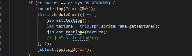 jsbTest是c++中自动绑定的类,testlog4是想传递texture类型的数据,