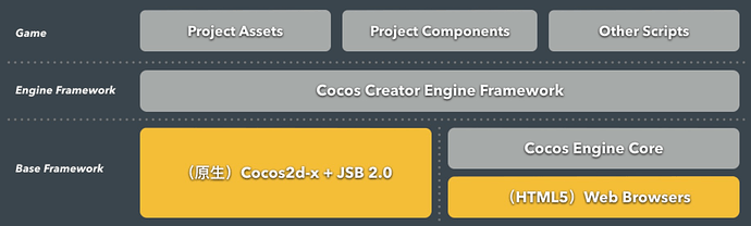 类似这样的一个架构,最终两种流程,暴露给了用户同样的js层接口,就是我们的引擎API。