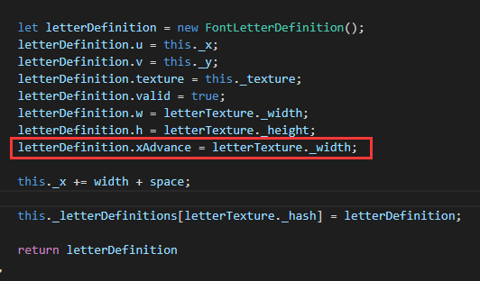 xadvance不应该是texture的宽度,应该是字符的宽度,否则描边之后字符间距就变大了