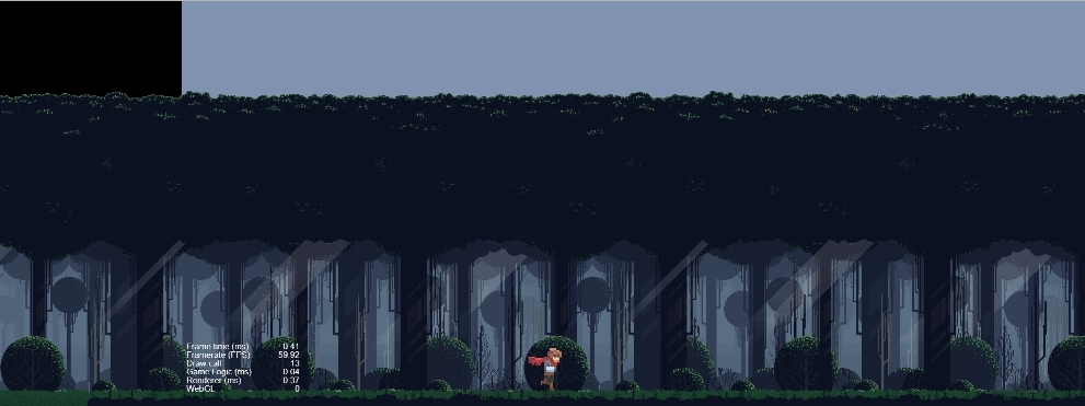 我们可以看到,多余的地方被补上了黑边.也就是说,我们可以简单的认为在做一个固定分辨率比率的游戏.如果渲染设备不适配该比例的话,canvas 会通过 上下 或者 左右补黑边的形式,将 实际渲染区域锁定在我们希望分辨率比率下