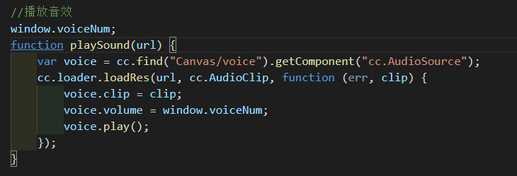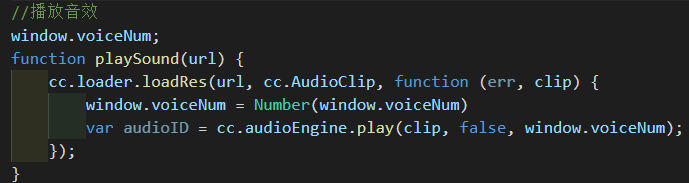 properties: { audios: { default: [], type: cc.AudioClip, } }, onLoad() { this.global = require("global"); this.bgm = cc.audioEngine.playMusic(this.audios[0], true); this.setVolume(); if (CC_WECHATGAME) { wx.onAudioInterruptionEnd(function(){ console.log('暂停&开启BGM音乐') //强行暂停音乐 如果不暂停,调用resumeMusic是无效的,因为是微信让声音消失了 cc.audioEngine.pauseMusic(); cc.audioEngine.resumeMusic(); }); } }, setVolume(){ cc.audioEngine.setMusicVolume(this.global.bgmVolume); cc.audioEngine.setEffectsVolume(this.global.effVolume); }, gameStartPlay(){ cc.audioEngine.playEffect(this.audios[9], false); },});