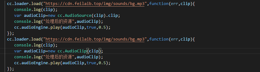 这里加载到的 clip 就是 cc.AudioClip 实例