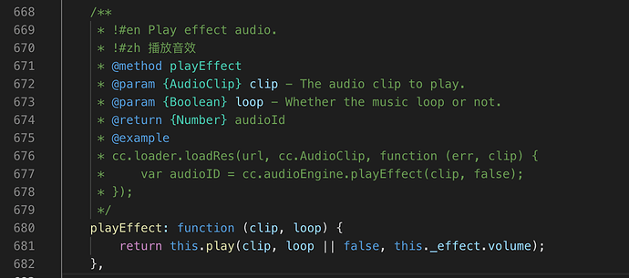 cc.audioEngine.playEffect 这个是封装的一个播放 音效的方法 可以看到 他有一个数组装着,然后可以 把 音乐和音效 分开处理