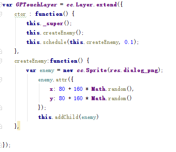想实现这个createEnemy函数的5次循环,在屏幕上刷新五个精灵出来 请问如何实现?听说是用回调函数实现的 代码如下