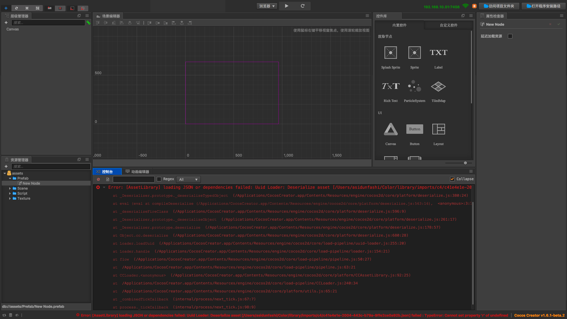 我在预制体上挂的脚本设置cc.Color作为属性检查器属性之一后,在属性检查器中为其赋值并保存关闭预制体之后,预制体就打不开了