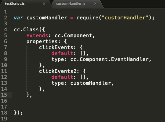 如图,我直接copy了引擎的CCComponentEventHandler.js改名为 customHandler,然后引入 customHandler作为clickEvents2的type,然后拖到属性检查器中却跟clickEvents不一样的排版,究竟cc.Component.EventHandler还做了啥骚操作?
