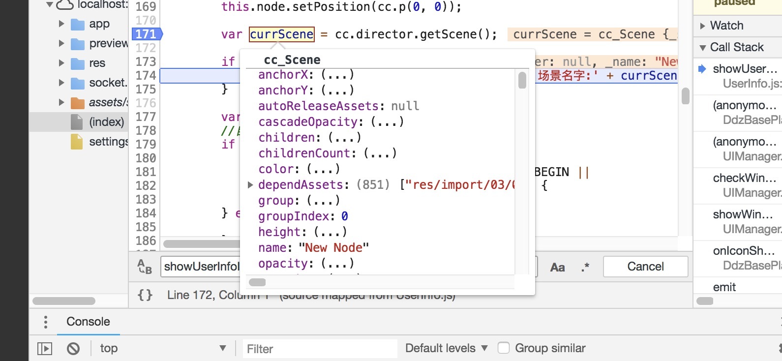 cc.director.getScene 获取场景名字不对