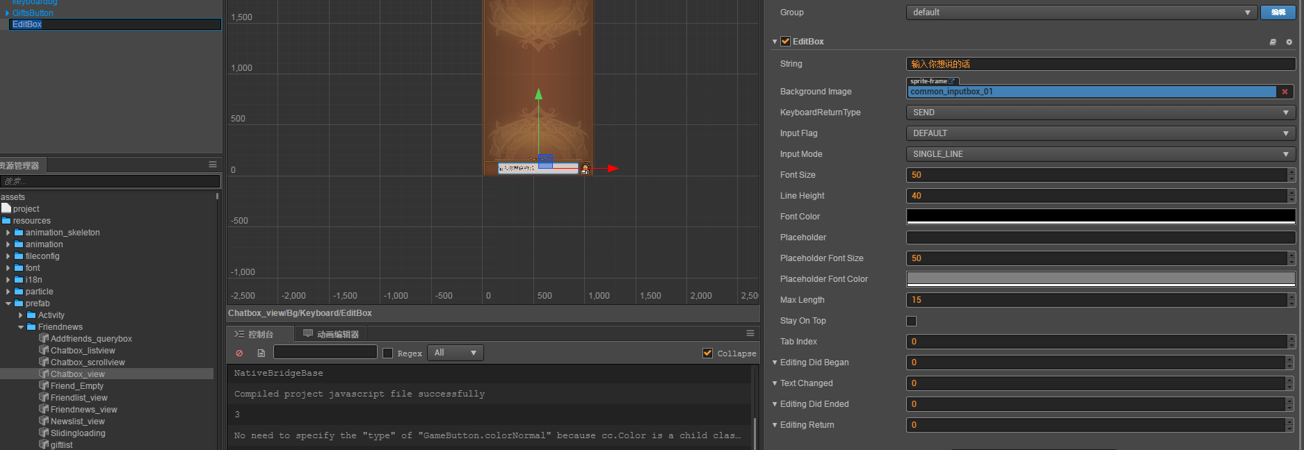 还有个关于EditBox的问题,就是我在return的时候把this.speakEditBox.string = “”;已经赋空了,EditBox里还好显示上一次输入的内容,必须得在点击一次才会显示默认的提示。
