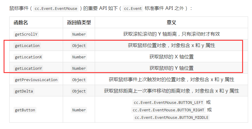 鼠标事件(cc.Event.EventMouse)的重要 API 如下
