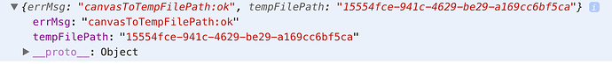 需要新建一个canvas,将当前画布的内容绘制到这个canvas后,再使用这个canvas去调用toTempFilePath。这样返回的路径就正常了。
