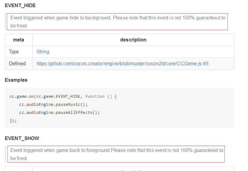 cc.game.EVENT_HIDE和cc.game.EVENT_SHOW问题修正思路,大家都知道这两个事件不是100%能保证触发的,现在主要问题,可能是在程序回到前台或者到后台以后,JS引擎或逻辑还没有准备好或者已经提前暂停,无法真正触发到这个事件.但是原生级别的接口调用是一定能成功的.