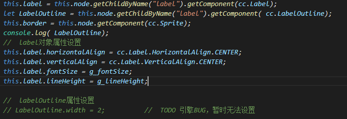 下面只举例cc.labelOutline的错误,同理,设置cc.sprite的type属性时也会出现相同的错误。