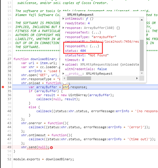 可以看到 downloadBinary时,onload时404 时,也callback(null, result);