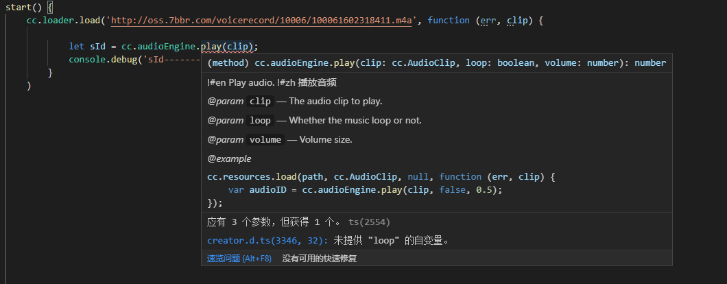 cc.loader.load(‘http://oss.7bbr.com/voicerecord/10006/100061602318411.m4a’, function (err, clip) {