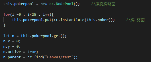 透過Prefab已經先做好撲克牌的預制,prefab中包含三個node(背面、正面一般牌、正面鬼牌)