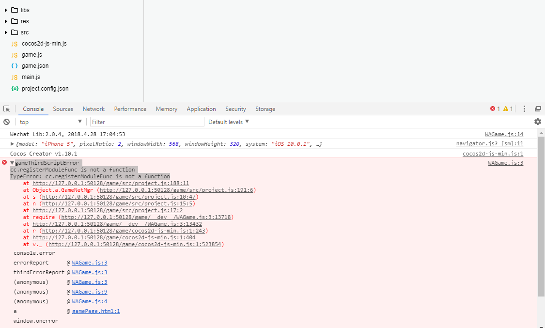在cocos creator可执行,1.10.1版本构建后到微信开发者工具(1.02.1808300)打开后出现一下错误,新手求指点