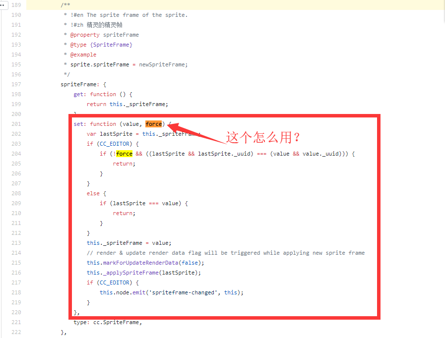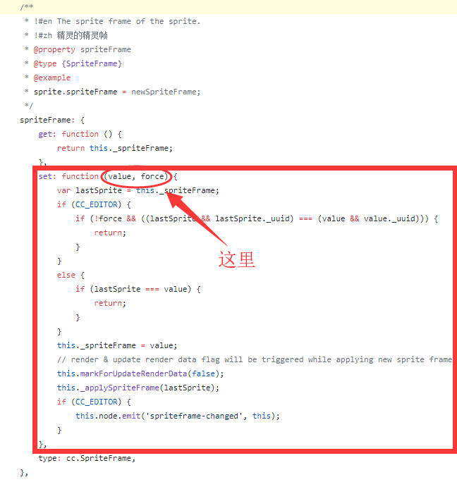 本人小菜鸡一枚,问一下这个spriteFrame的访问器属性set里有两个参数该如何传值