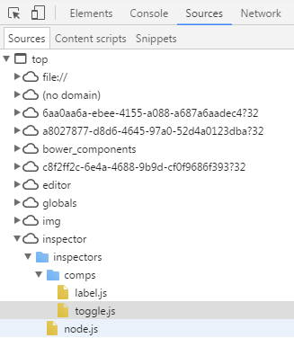 开发者工具 --> Sources --> top --> inspector --> inspectors --> comps