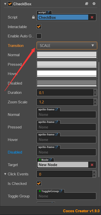 写个组件扩展cc.Toggle,Transtion不论怎么选,下面的属性都不会变化。哪怕什么都不做也是,类似下面的