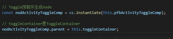 4,根据预制创建出对应的node,并设置父节点为1步中的ToggleContainer