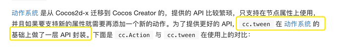 至于cc.tween和之前的动作系统的关系,文档中说的很清楚了