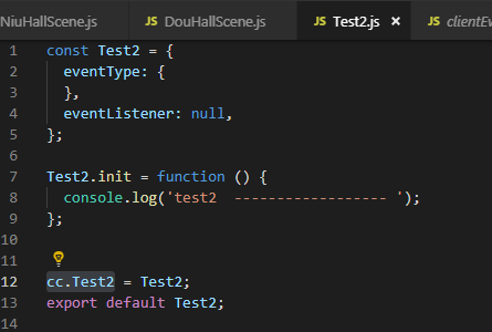 然后,在其他的文件中,一次都不需要引入Test2.js这个文件,cc.Test2 能正常使用;
