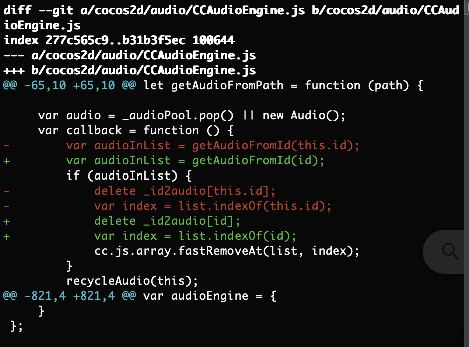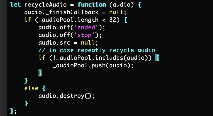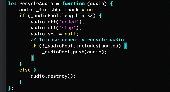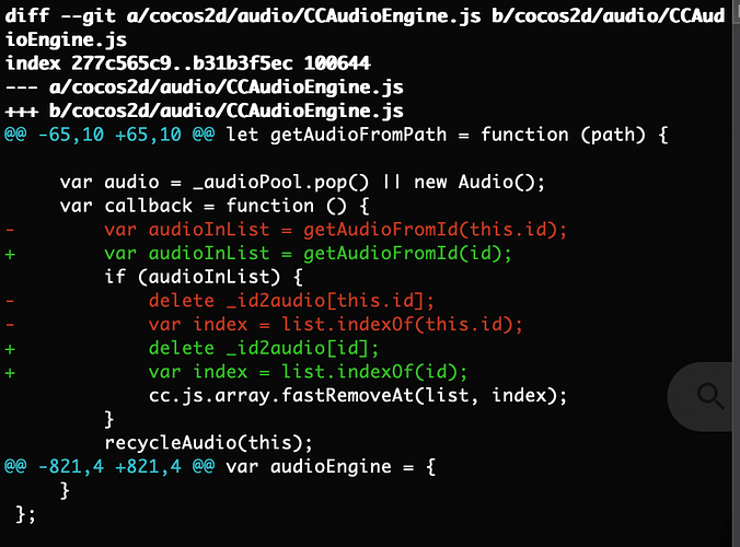 主要调整是 把 this.id 换成闭包 id,原本的 this.id 使用的是复用对象池里的audio的id,这个或许有可能那个audio 的id,还没有被更新吧。