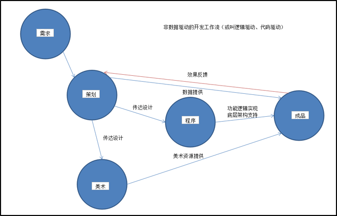 如下图所示,传统的非数据驱动下,成品由业务逻辑+内容组成,一般是先搭架子后填肉的工作流,产品反馈周期长,迭代时间长