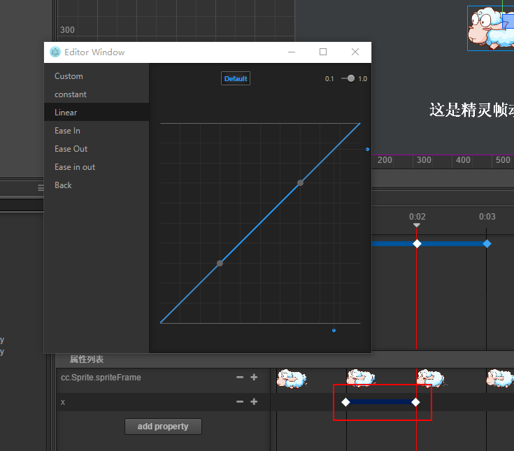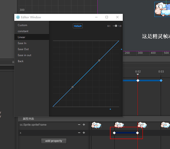 ‘’我们首先需要在一条轨道上创建两个不相等的帧,比如在position上创建两帧,从 0,0 到 100,100,这时候两帧之间会出现一根连接线,双击连接线,则可以打开时间曲线编辑器。‘’ 无法打开时间曲线编辑器。