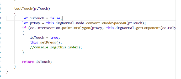 还有个问题 触摸检测,多边形区域检测 开发模式下,都很正常 但是build后,按键都不对,是我代码逻辑不对么? 主要是为什么开发模式下正常····· 代码如下,希望帮忙看下