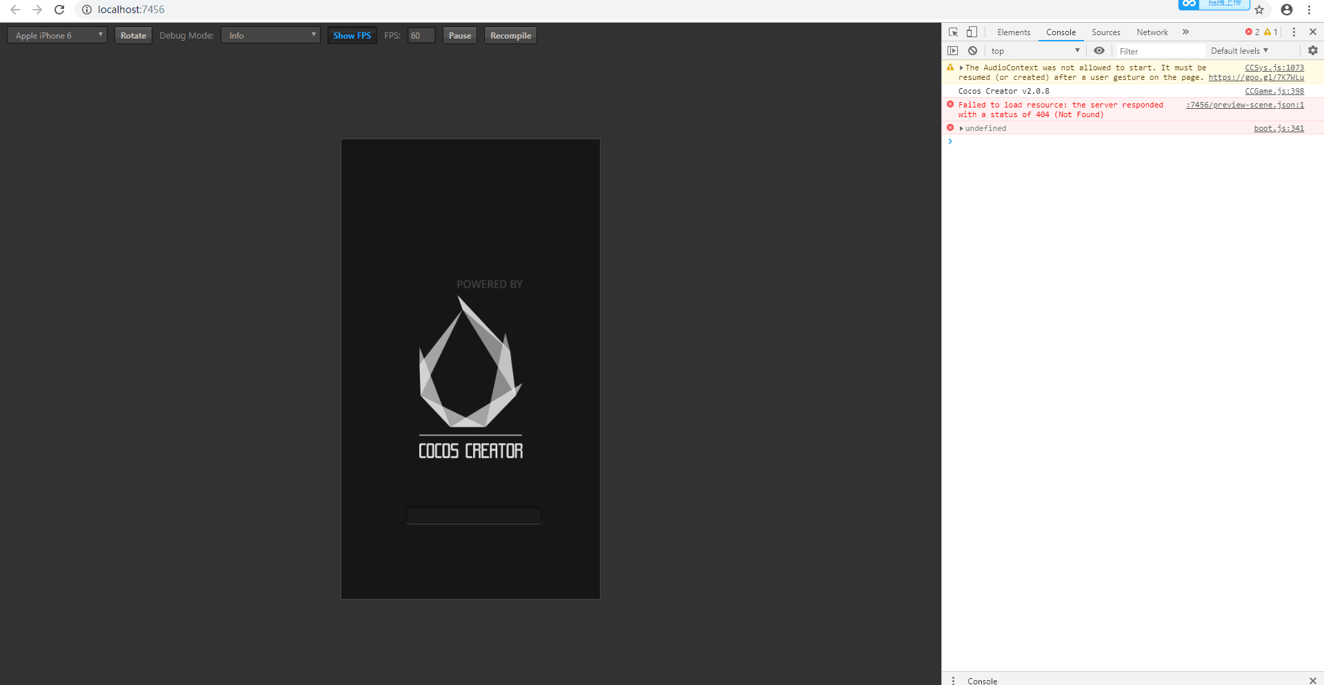 ccc 的工程在ccc 2.0.8的版本下打开然后运行就会报下面的截图中的这个错