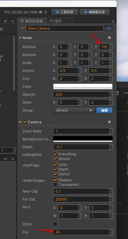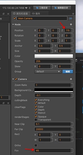这是创建 canvas自带的camera,现在我将这个 camera调成3d模式,我会将这个z轴的值,由现在的 1153改变为 883。然后造成的问题是 跟这个camera同级的 按钮都不能点击了。