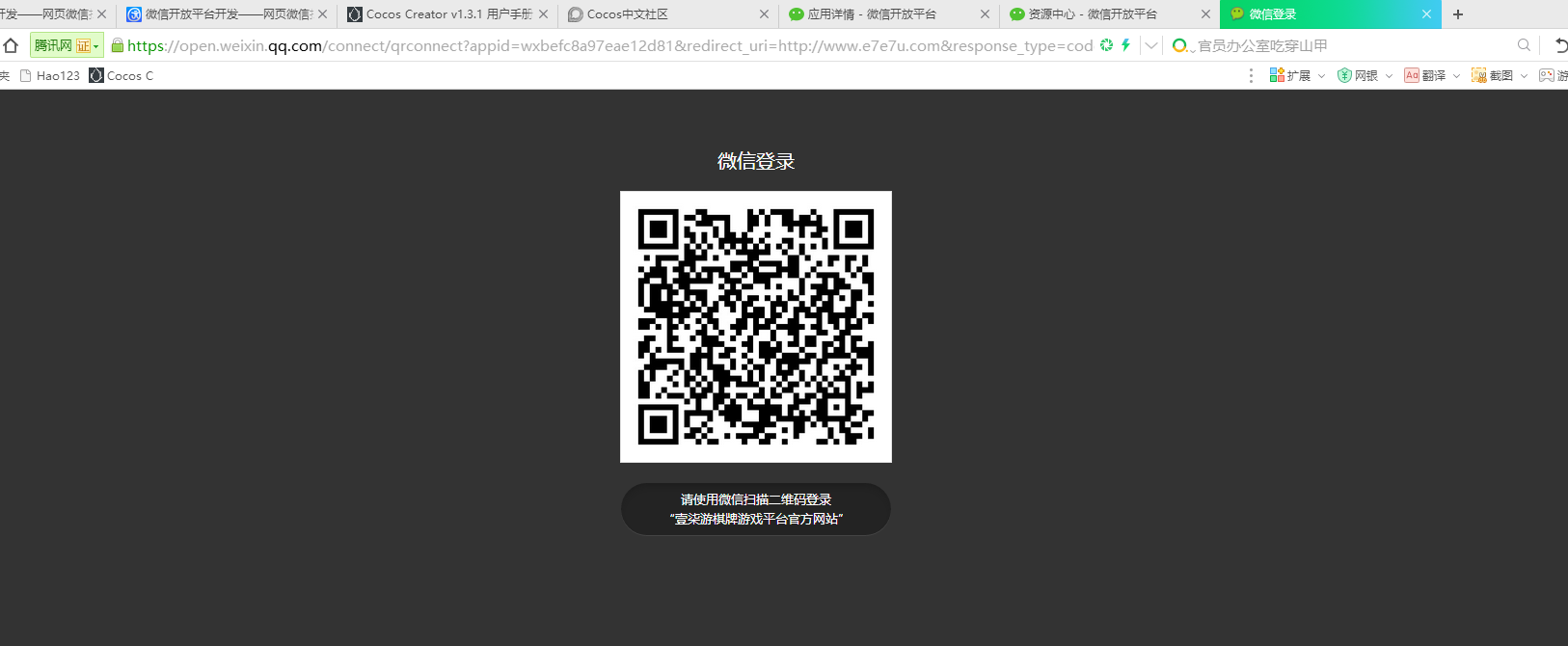 基于教程 网页微信扫码登录,我现在通过appid 和redirect_uri 整合得到了一个 Url。直接点击打开如下图所示: