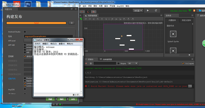 Java环境配置好了,vs2012安装好了。可是在构建发布的时候,日志会提示: