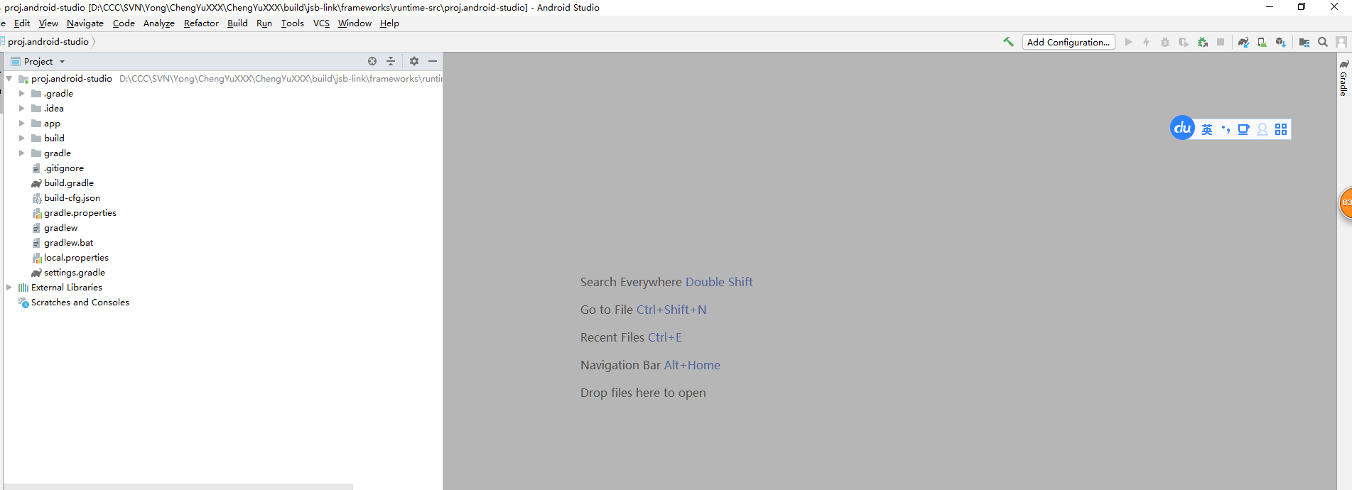 使用 Android Studio 工程:D:\CCC\SVN\Yong\ChengYuXXX\ChengYuXXX\build\jsb-link\frameworks\runtime-src\proj.android-studio
