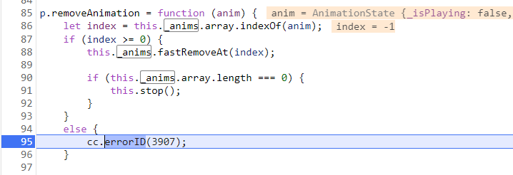 打断点看,原来是动画停止时,从cc.Animation里一个数组里删除AniState引用时-出现引用没有