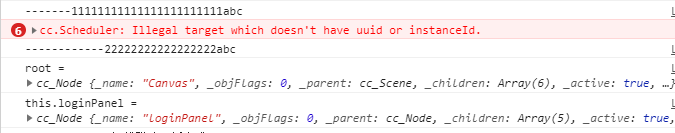 CCDebug.js:252 cc.Scheduler: Illegal target which doesn’t have uuid or instanceId.