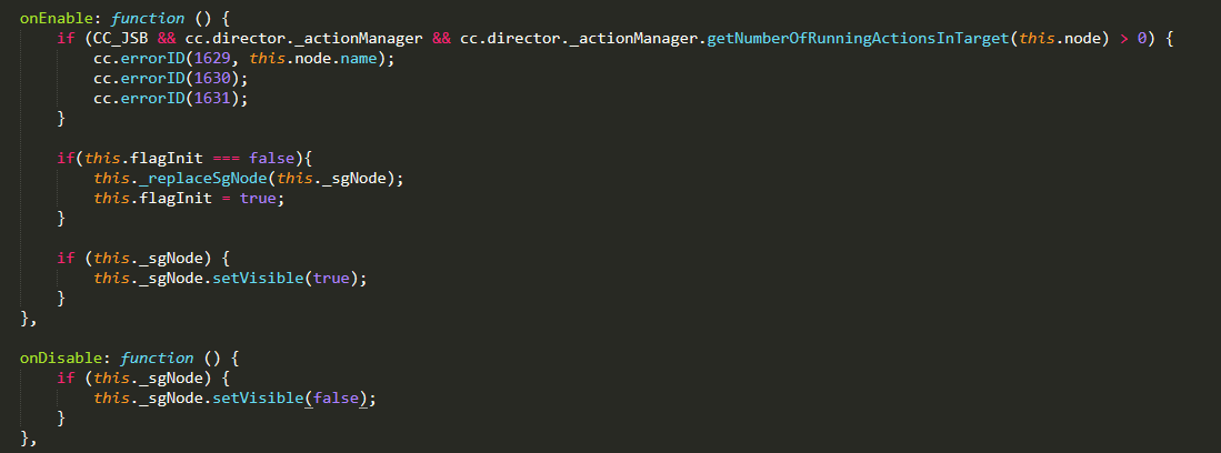 当显示和隐藏,都会执行替换sgNode,我的工程通过性能探测,这样消耗会比较大(本身1.x的隐藏显示,就消耗大)。