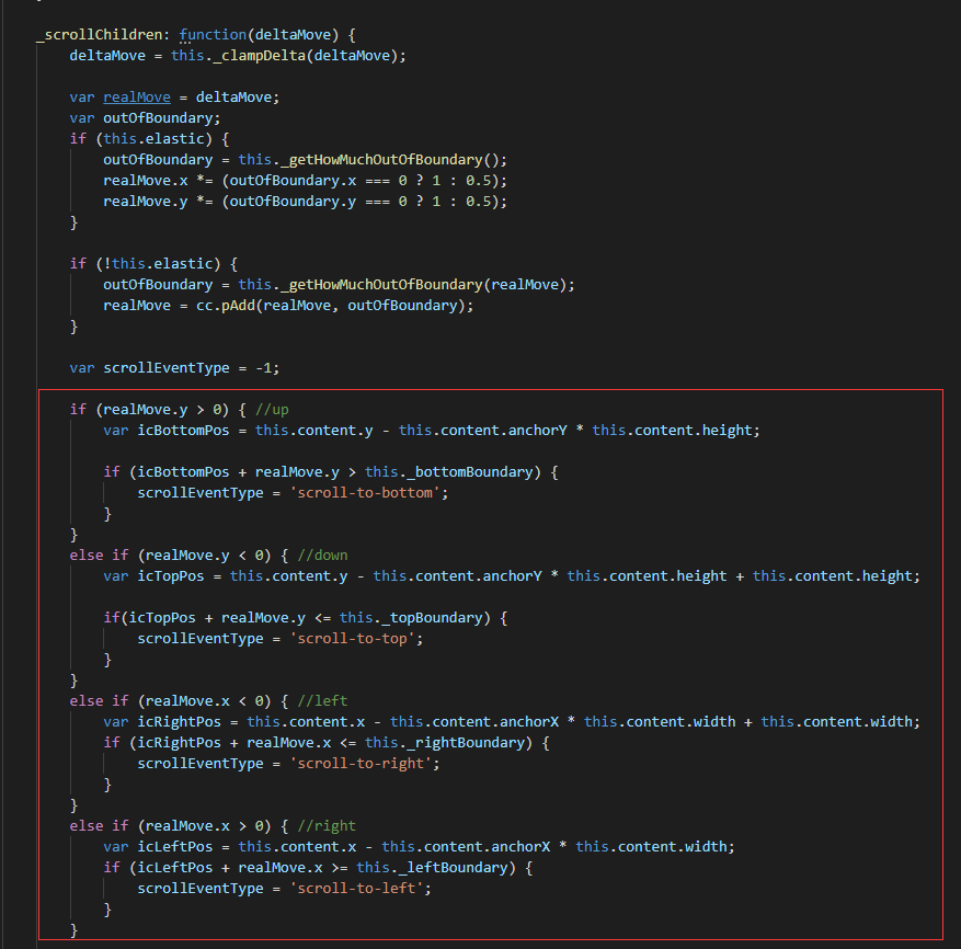 添加了 scrollView.node.on( “scroll-to-left”, () => { })