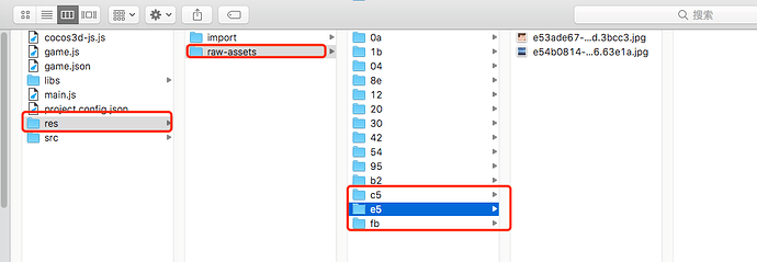 然后 打包成 微信小游戏 的res 文件夹是这样的,我要去找这几个文件在哪里,文件少一点还好,多的话 咋去弄