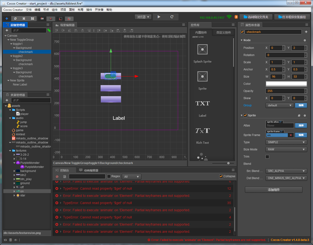 在其他地方创建sprite组件再创建label子节点,没法把这个sprite拖到checkmark的sprite frame里。