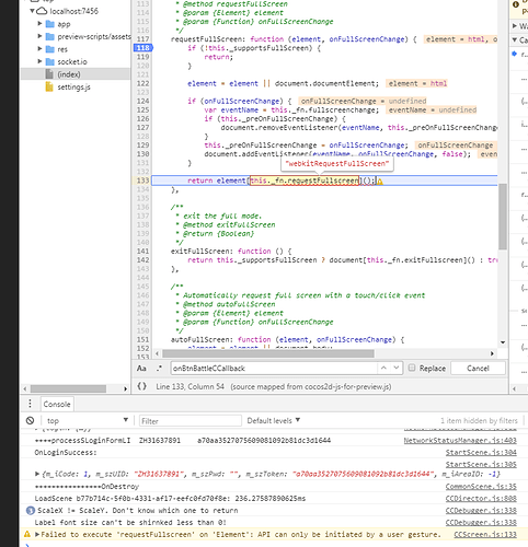 Failed to execute ‘requestFullscreen’ on ‘Element’: API can only be initiated by a user gesture.