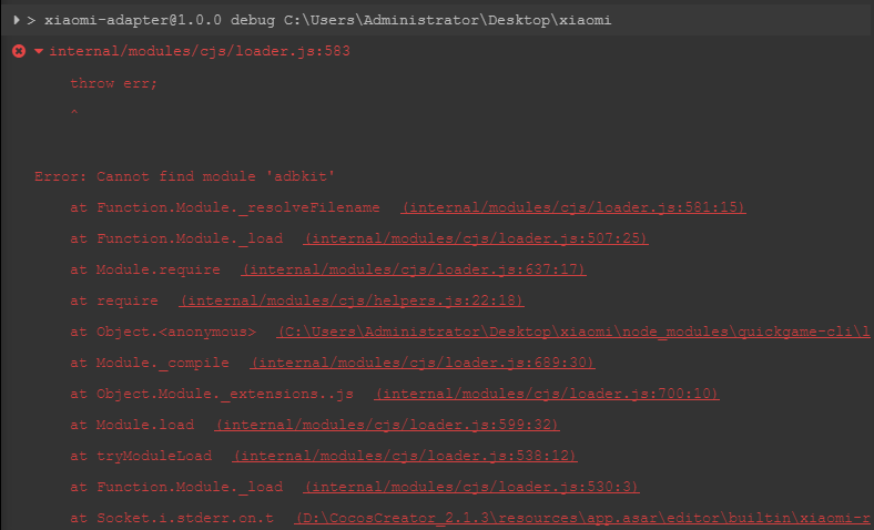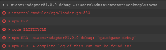 13 verbose stack Error: xiaomi-adapter@1.0.0 debug: quickgame debug