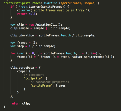 let frames = clip.curveData.comps[“cc.Sprite”][“spriteFrame”];//这是一个数组