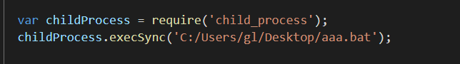 不是填路径,是执行命令 execSync(‘start “” “c:\hello.bat”’);
