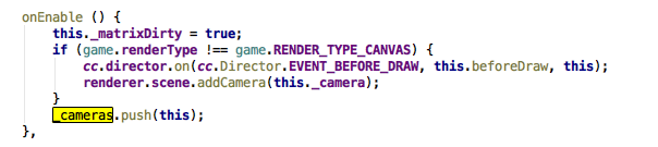 因为代码存储 Camera 是在 onEnable 的时候去存储的