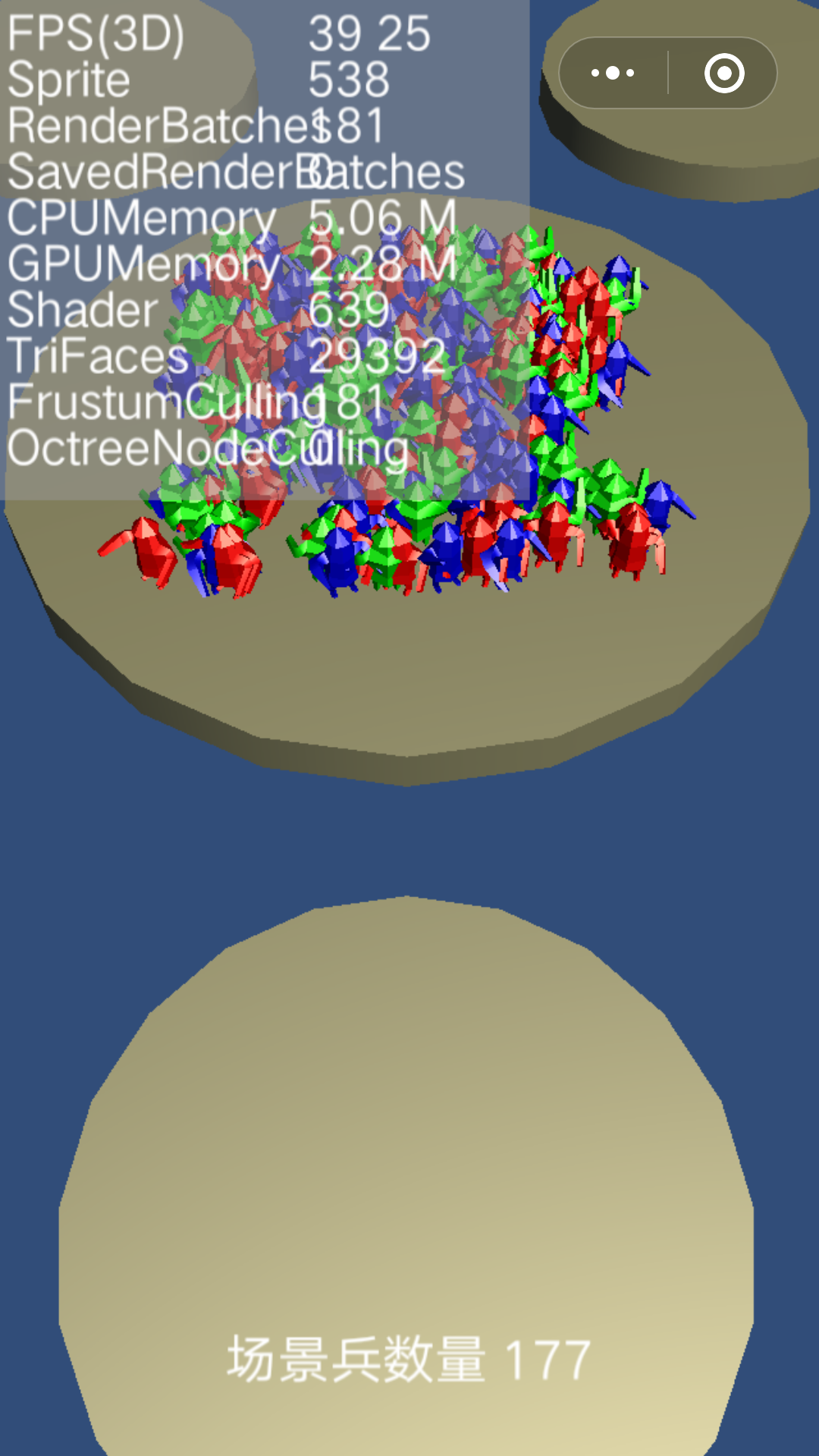 而且 cocos 不创建兵种 只创建4个圆柱体,我的OPPO R9S 就只能跑40帧数。