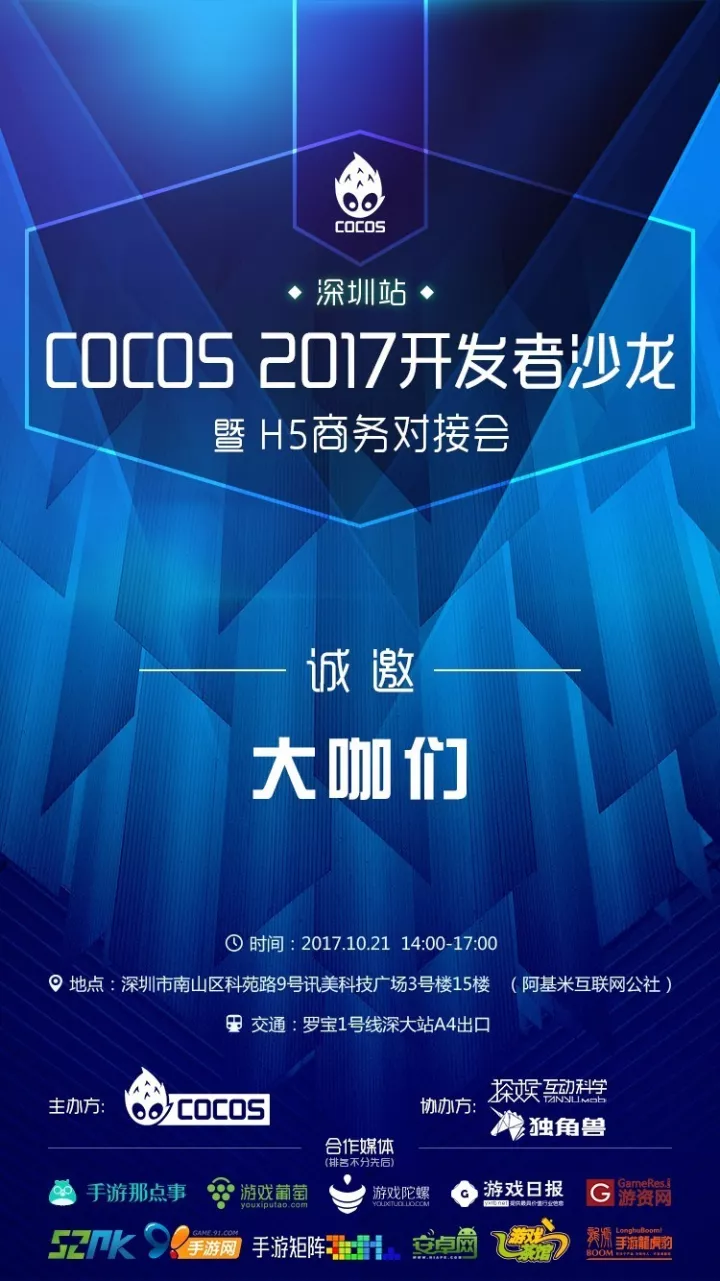 「深圳站」Cocos 2017开发者沙龙暨H5商务对接会,我们等你,不见不散!