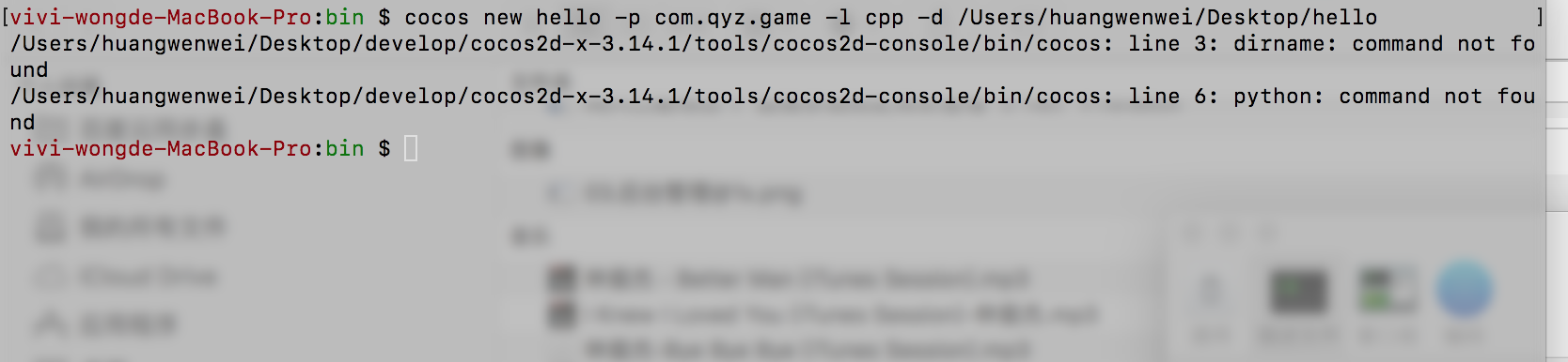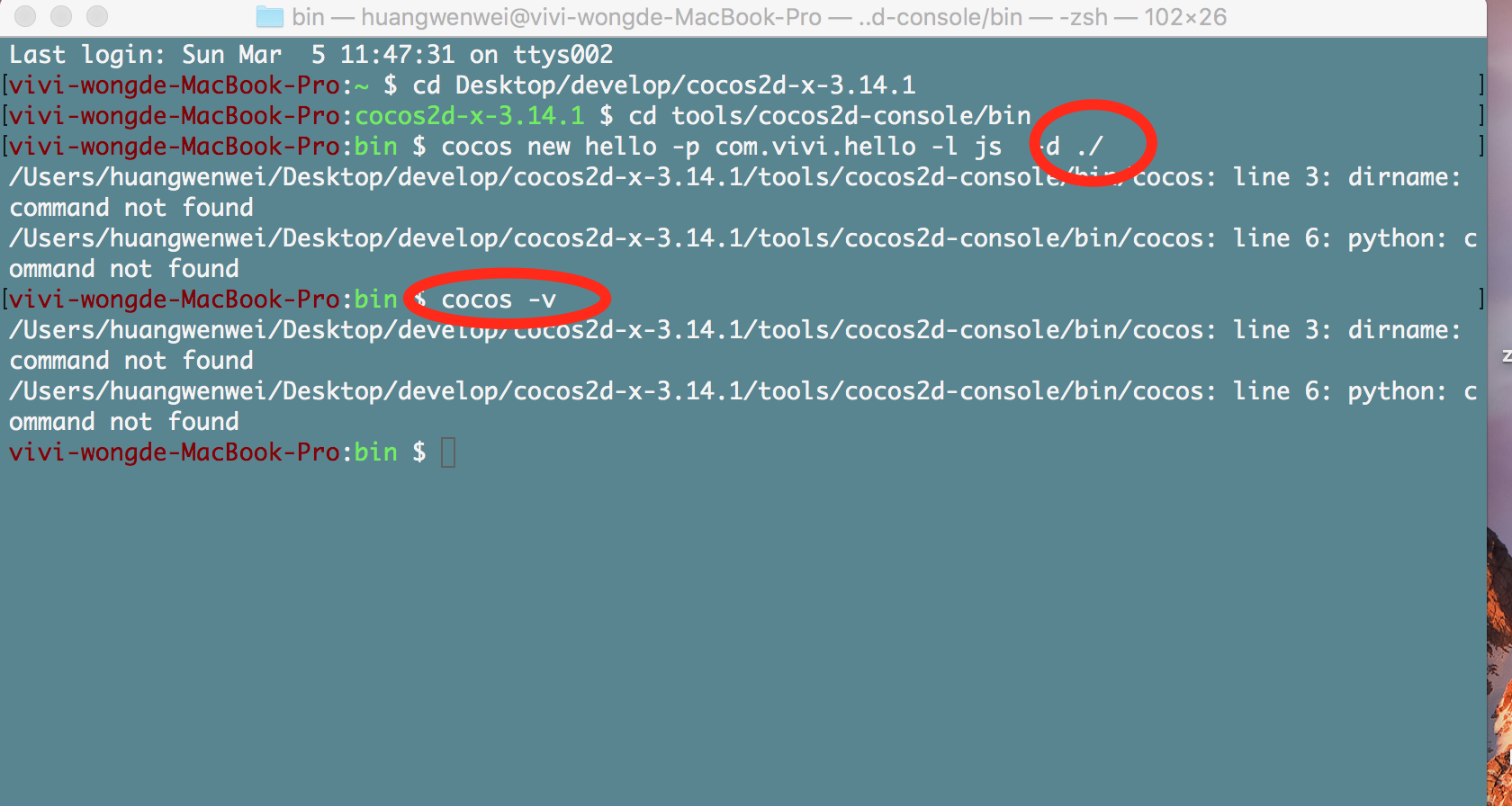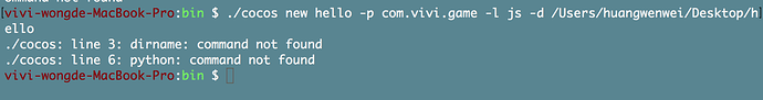 mac环境,下载了3.14.1版本,解压,./setup.py之后,后面的3个关于安卓的配置skip了,然后source 了一下,运行cocos 命令,/bin/cocos: line 3: dirname: command not found /bin/cocos: line 6: python: command not found报了这两个错,请大神指点下。
