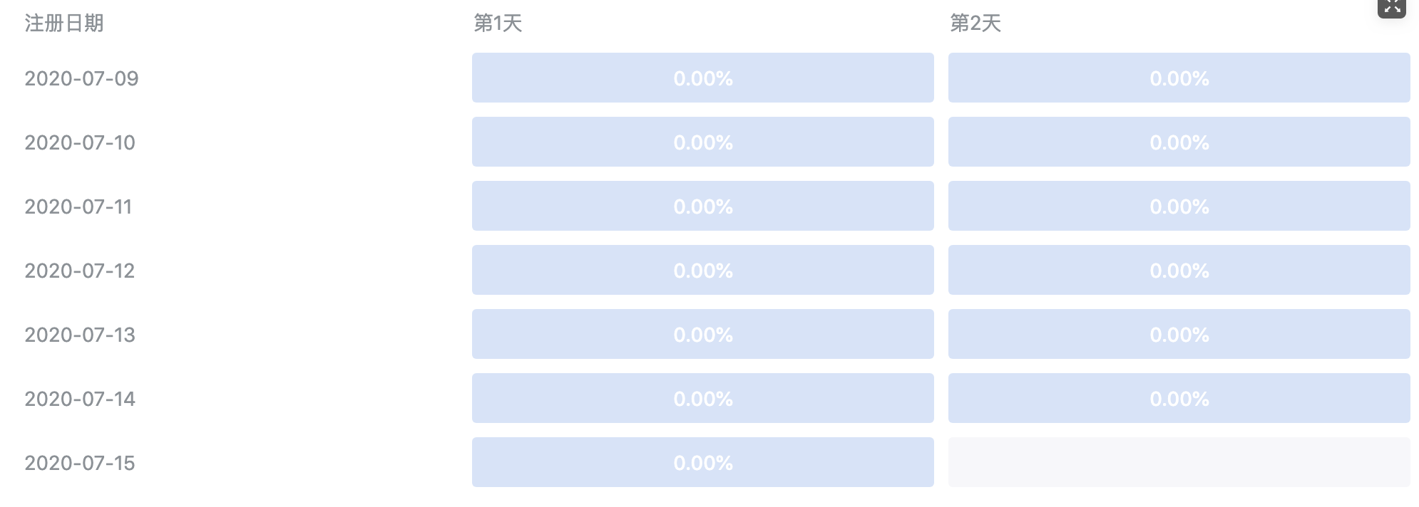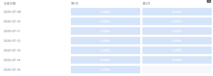 留存界面,第一天是指次日留存么?当前是17号,看不到15 -> 16日到留存信息